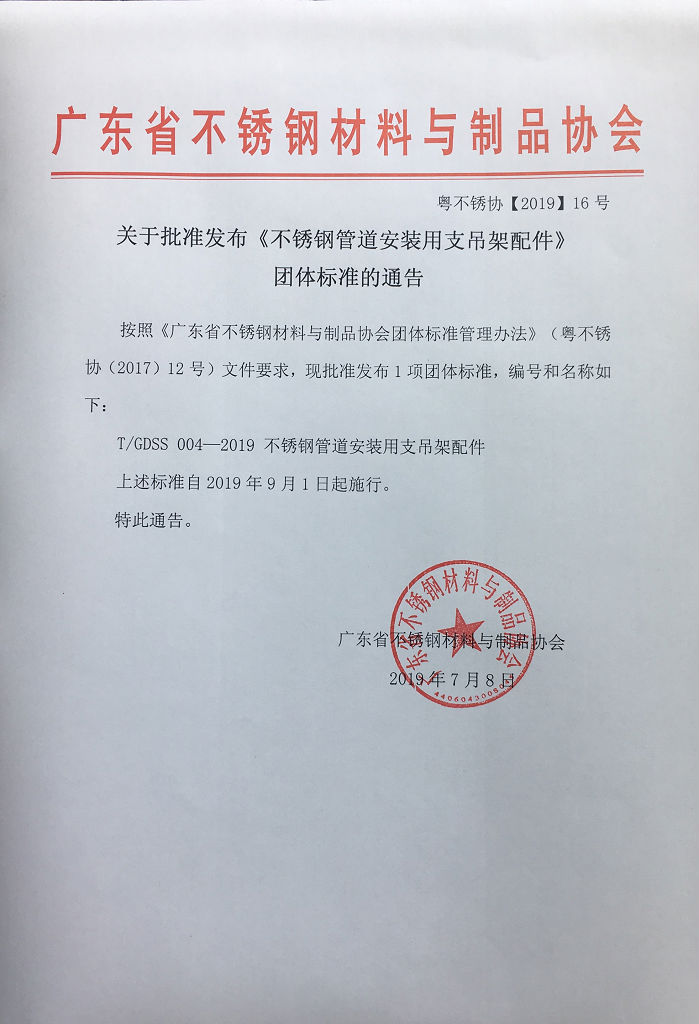 《不銹鋼管道安裝用支吊架配件》團體標準正式發布